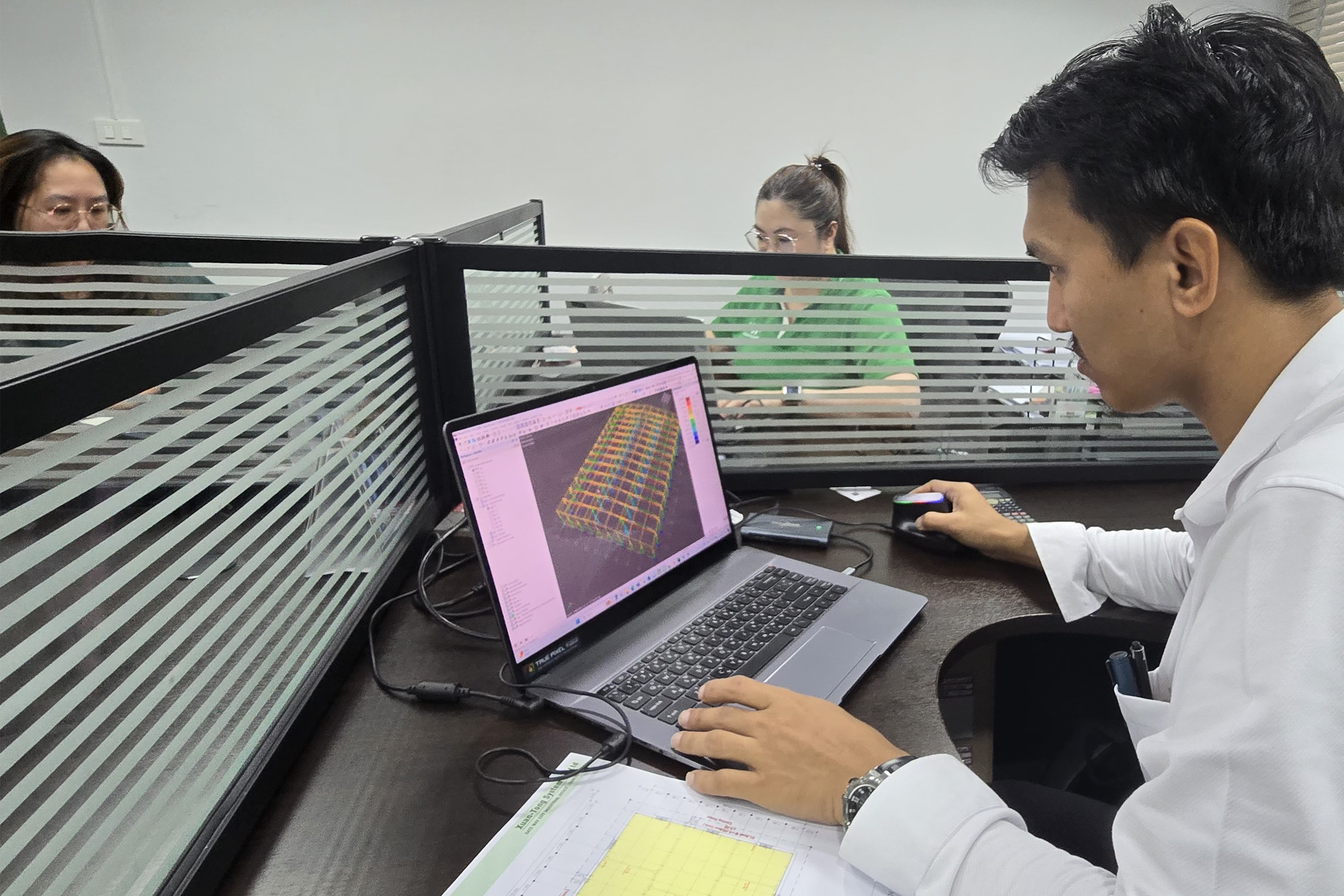 การออกแบบทางวิศวกรรมของสิ่งก่อสร้างต้องมีความเหมาะสม ปลอดภัย และถูกต้อง ไปจนถึงการจัดหาวัสดุ การสำรวจอุปกรณ์และเครื่องจักรที่ตอบโจทย์ความต้องการของลูกค้า โดยการสร้างโมเดล 3 มิติ (3D Model) ภายในซอฟต์แวร์ ที่รวบรวมทั้งงานสถาปัตย์ โครงสร้าง และงานระบบเข้าด้วยกัน ทำให้มองเห็นภาพรวมของสิ่งก่อสร้างได้จริงก่อนเริ่มก่อสร้าง ทั้งยังเป็นแนวทางในการวางแผนสั่งวัสดุต่างๆ ได้อย่างแม่นยำ สามารถตรวจสอบตำแหน่งหรือความผิดพลาดในจุดต่างๆ ผ่านโมเดลก่อนลงมือสร้างจริง ลดปริมาณวัสดุเหลือใช้ ประหยัดทั้งพื้นที่จัดเก็บและงบประมาณ โดยทีมวิศวกรผู้เชี่ยวชาญ